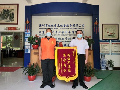 2022年6月24日,龍華區(qū)福城街道領(lǐng)導(dǎo)黃燕同志等領(lǐng)導(dǎo)對我司(鐵保宏泰保安公司)派駐疫情卡口值班保安員鐘培華同志給予高度的表揚(yáng)和認(rèn)可,并為其頒發(fā)了獎金和慰問品以此予以鼓勵。同時強(qiáng)調(diào)全體疫情工作人員要向鐘培華同志學(xué)習(xí)盡職盡責(zé),落實責(zé)任,堅決做好疫情防控工作。