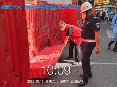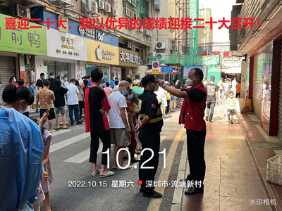 鐵保宏泰安保隊(duì)員助力寶安西鄉(xiāng)街道流塘荔景小區(qū)喜迎二十大,慶祝二十大召開。