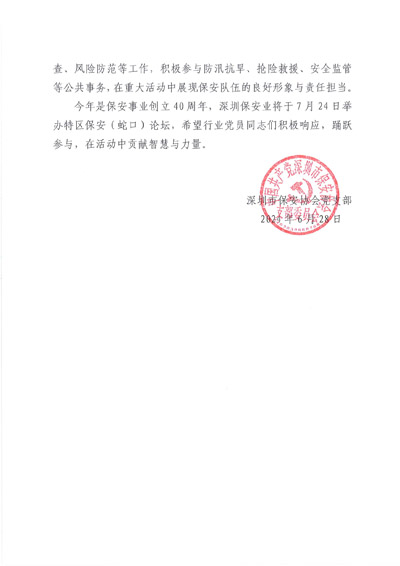 深圳保安協會發(fā)布關于七一建黨節(jié)倡議書