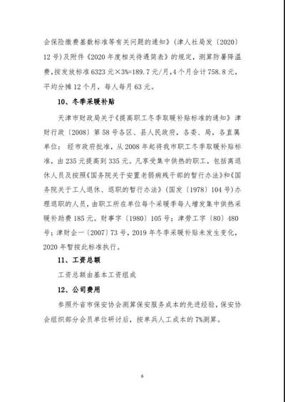 天津市保安協(xié)會發(fā)布《2020年度天津市保安服務普通保安員法定最低成本標準測算表》及編制說明。