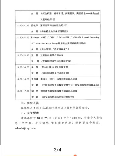 請各單位于10月25日(周五)中午12:00前,將參會人員信息(文件名:企業(yè)簡稱+論壇參會名單)報送至協(xié)會郵箱: szbaxh@qq.com。